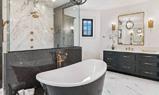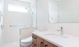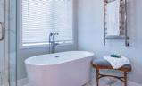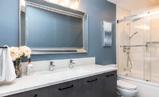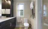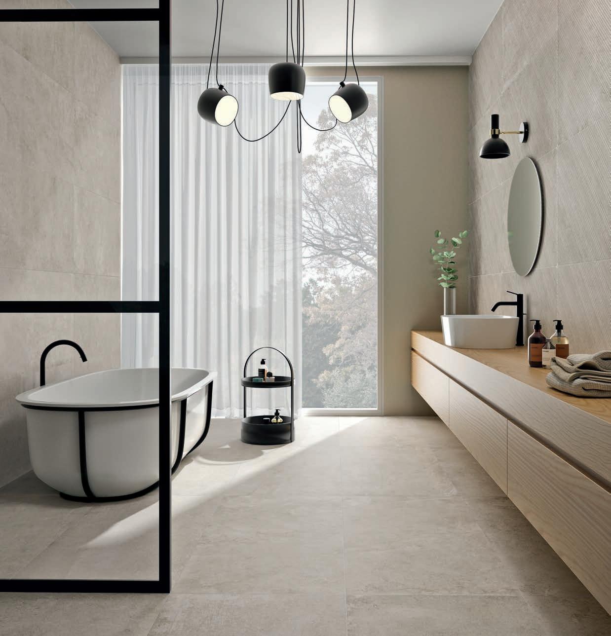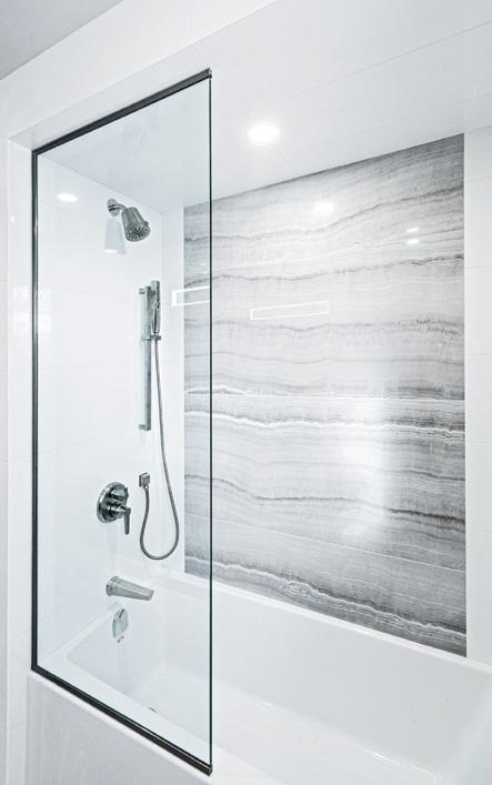 Large format tile repeated in the shower for consistency & minimal grout lines.