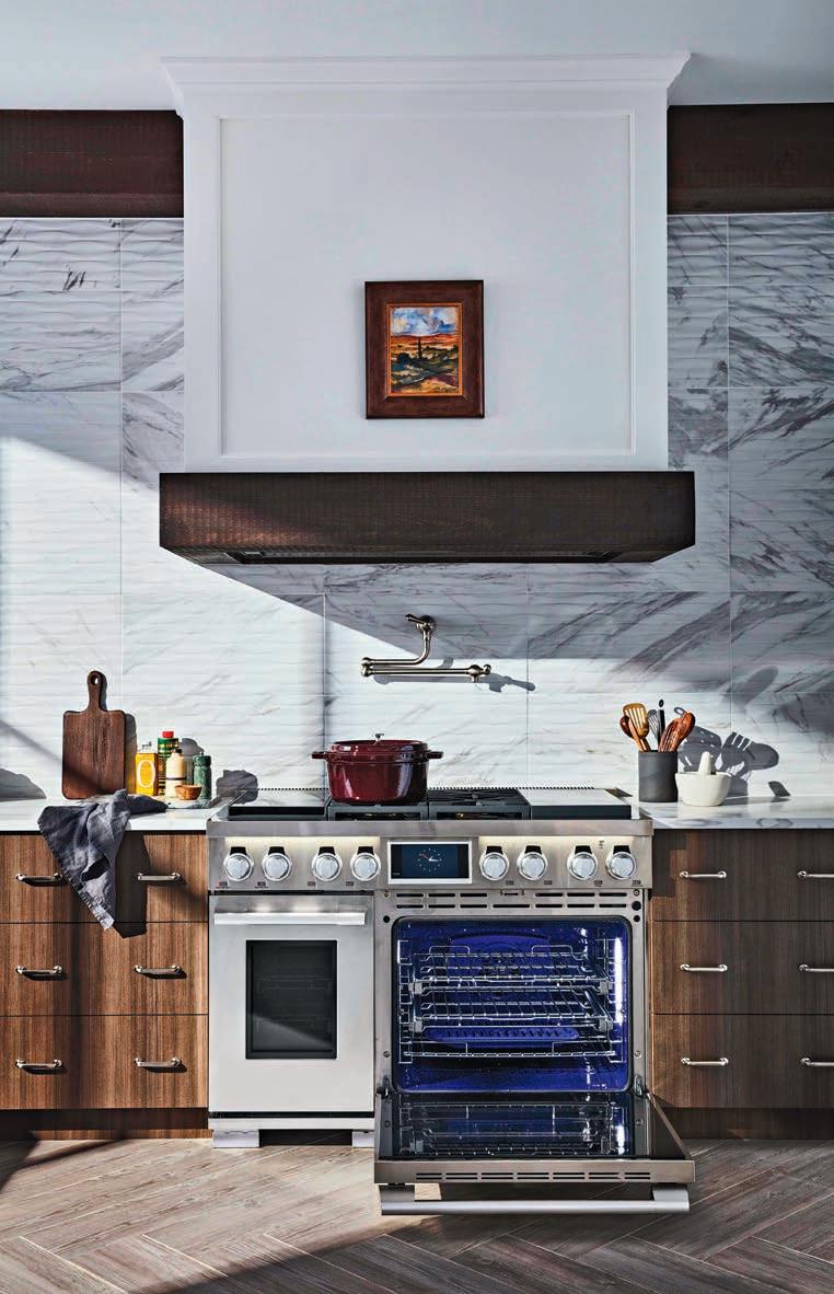 range fit seamlessly into any kitchen space (as shown in the picture), but it can also turn into the centrepiece. Its multi-purpose function offers premium features such as industry-first built-in sous vide, induction and gas on the cooktop. Meanwhile, it comes equipped with two ovens: An 18-inch True Steam-Combi oven, which combines steam and convection for gourmetlevel results, and a 30-inch oven that features ProHeat convection technology and comes with a rear-wall element to distribute heat evenly.