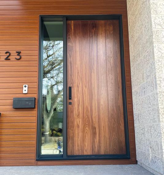 in front of it,” notes Melendez. “The pivot door has a certain gravitas to it instead of a side-hinged door.”
