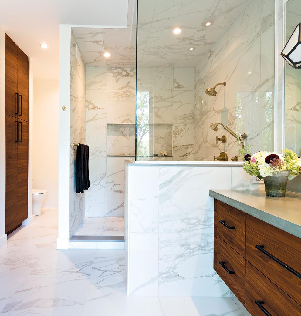 The overall look started with a colour that the clients had in mind. They wanted to embrace the use of white throughout. While an allwhite interior can feel cool, we still wanted a space that was warm and inviting. In the end, the use of white allowed the other design elements to pop and create a sense of warmth and youthfulness.
