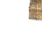 A wall hung prefab. unit provides extra storage and display area. The textured baskets repeat the natural, wood tone detail.