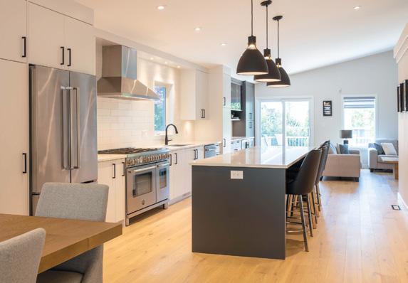 Sometimes what is really needed is a new floor plan. The feature on page 56 describes a renovated house in Island Lakes that was built in 2003. Originally, the main floor was subdivided with a wall between the kitchen and family room and between the dining room and living room. Removing the wall streamlined the space and took advantage of the vaulted ceiling’s dramatic effect. It also allowed for a much larger kitchen island, which is perfect for their family and for entertaining.