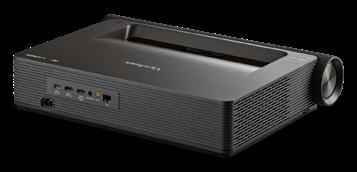 • Alcance ultracorto. El lente de alcance ultracorto de 0.22 garantiza que el proyector se pueda colocar a solo unos centímetros de una pared o pantalla y proyectar una imagen de hasta 100 pulgadas. Ya sea que se coloque simplemente en un soporte o se em-
