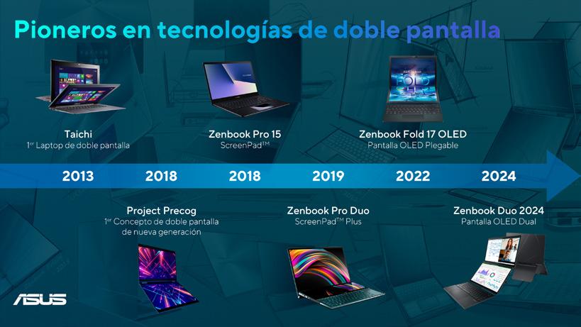 La pasión de Asus por la innovación es su portafolio de laptops de doble pantalla, formato con el que la marca taiwanesa tuvo un primer acercamiento en el año 2012 con la Asus TaiChi, y que más tarde, en el 2018, comenzó a explorar más a fondo, con la crea-