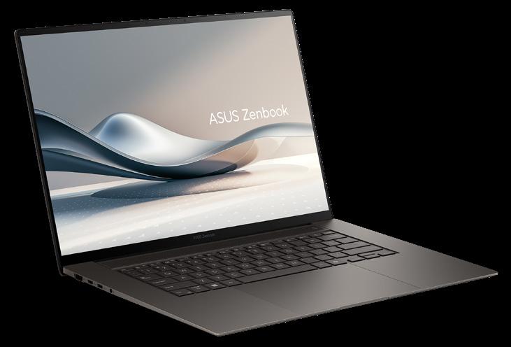 IA para movilidad extrema: Asus Zenbook S 16 (UM5606) Una fusión impresionante de arte y tecnología, la laptop premium Asus Zenbook S 16 es una ultraportátil delgada y ligera, con solo 1.1 cm de grosor y un peso de 1.5 kg. Es una obra maestra de la artesanía que, a pesar de su diseño elegante, puede ofrecer hasta 28W de TDP y 50 TOPS a través de la NPU de su formidable procesador AMD Ryzen AI 9 HX 370, ayudada por un sistema avanzado de enfriamiento de cámara de vapor 3D que es único en un dispositivo tan delgado y que es capaz de un enfriamiento extremadamente silencioso <25 dB. En el área del teclado mecanizado por CNC, un nuevo diseño de rejilla geométrica asegura el máximo flujo de aire mientras reduce la entrada de polvo.