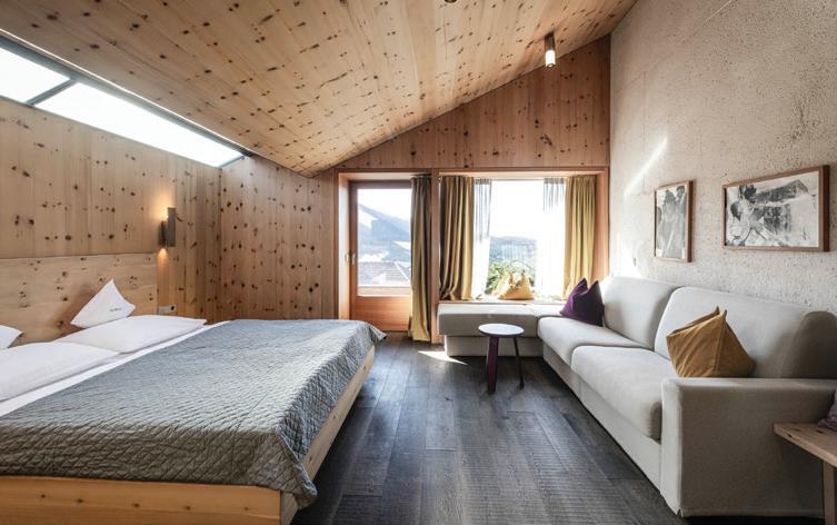 Sigmund Freud wrote of this hotel: ‘It was adorably secluded: mountains, woods, flowers, water... and no hubbub of people... and how good the dinner was’. A natural paradise accessible on foot or by off-road taxi. Built in the 14th century and run by the Wodenegg family for 200 years, this residence boasts unique attractions: the library, the music room with its grand piano, the large dining room, the small Stube, the sun-kissed veranda and the sunny space under the majestic chestnut tree. The view is splendid, embracing medieval Chiusa, the Monastery of Sabiona, the Odle, the Sella Massif and the Sasso Lungo. Over the centuries, some things have changed, while others have retained their charm, such as the centuries-old wood, the rustic furnishings and the intimate and enveloping atmosphere. The 26 rooms, each one different from the other, are all original, minimalist, made of Swiss pine and, importantly, without TV or telephone. There is no need for them here, where silence and tranquillity reign supreme.