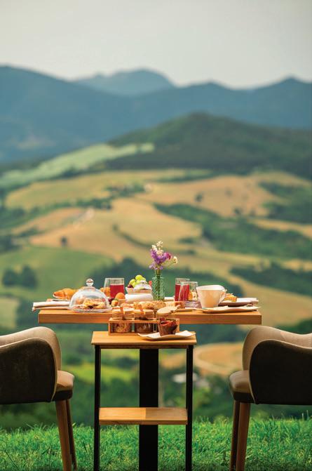 n a prime location at an altitude of 632 metres, overlooking the area between Urbino and Urbania, Aura Relais awaits you in a landscape of rare beauty, still wild and sparsely populated in places. Here, where peace and quiet reign supreme and light pollution is minimal, the stars are still clearly visible at night in all their splendour. It is in this setting that Aura Relais offers itself as a refuge far from everyday life. A renovation carried out in accordance with all environmental sustainability criteria. Indoor and outdoor spaces interact with each other, creating a unique and enveloping setting: 10 intimate and cosy rooms, a spa, an infinity pool and the Ponente restaurant, serving traditional local dishes enhanced by simple, seasonal ingredients and raw materials. A unique place where the palate is seduced by intense flavours while the view enjoys a breathtaking panorama of the Apennines.