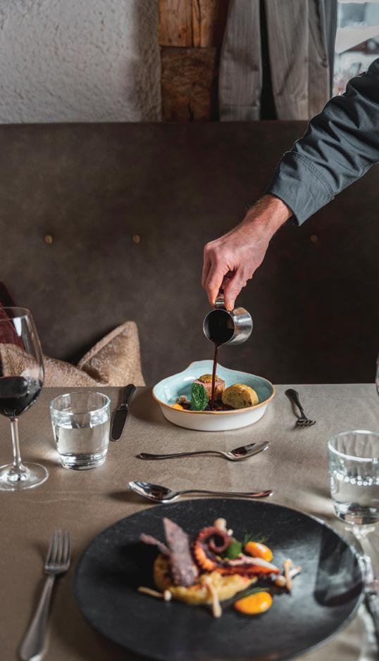 n a quiet, sunny location in the hamlet of Pinzago, just three kilometres from the Episcopal city of Bressanone, Alpen Rose is the perfect solution for anyone looking to enjoy a vacation filled with good food, friendliness, comfort, and tranquillity. Serving guests for almost fifty years, the Baldauf family not only offers relaxing stays but is also renowned for its excellent restaurant specializing in typical local dishes. Only high-quality regional products are used in the recipes, the result of close collaboration between the owners and local producers. Chef Jürgen, a faithful guardian of tradition and driven by a great passion for good food, will win you over with his delicacies. In 2018, the hotel was transformed into Dining & Living Alpenrose’s, a fantastic location for those who want to be pampered in a warm, authentically family atmosphere.