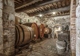 The cellars are located in the medieval village of Montefollonico: charming, close to the panoramic kitchen garden terrace, they house wines produced from the estate’s own vineyards: Nobile di Montepulciano, Acerone and Vin Santo, a nectar that rests in the historic Vinsantaia.