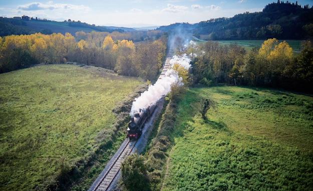 The journey takes place along a 150 km loop that crosses the Val d’Orcia and the Crete Senesi. The railway line between Asciano and Monte Antico, closed in 1996, has been given a new lease of life thanks to the Fondazione FS Italiane, the Associazione FVO – Ferrovia della Val d’Orcia – and the support of the province of Siena.