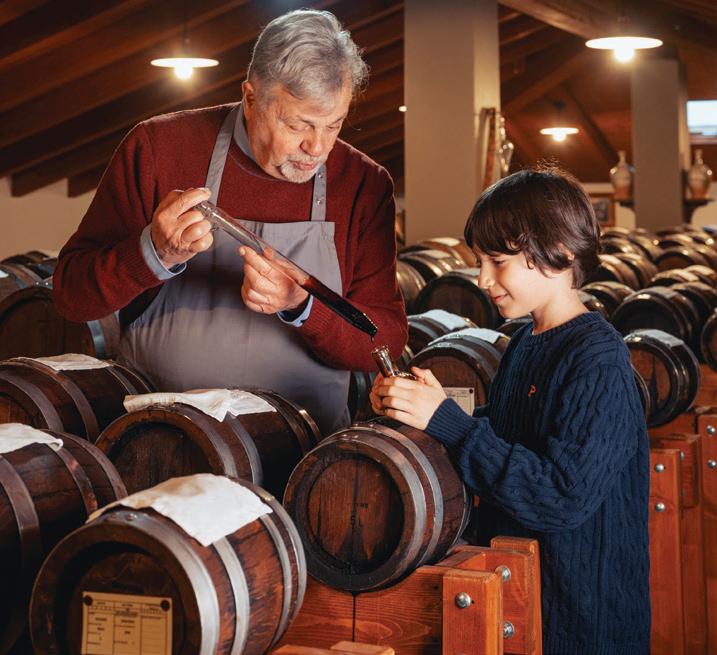 Nata nel 1910, l’Acetaia Marchi rappresenta un esempio virtuoso di continuità familiare e passione artigianale, tramandate di padre in figlio da quattro generazioni. Oggi guidata da Maurizio con il figlio Massimiliano e la nuora Diosnely, affonda le sue radici nella dedizione per ogni botte e nella consapevolezza di essere custode di un sapere secolare. Il suo cuore pulsante batte a Modena, in un antico casale restaurato immerso fra i vigneti di famiglia, dedicato alla produzione e confezionamento dei vari tipi di Aceto Balsamico. Un vero e proprio luogo dell’anima, dove le sale di invecchiamento e gli spazi di degustazione offrono ai visitatori un’esperienza sensoriale unica. Nella gamma firmata Acetaia Marchi in primo piano sua maestà l’Aceto Balsamico Tradizionale di Modena DOP ben affiancato dall’eccellente Aceto Balsamico di Modena IGP. Quest’ultimo è disponibile anche nelle versioni “Invecchiato” minimo tre anni e “Riserva” minimo cinque anni, ideali per abbinamenti gastronomici di sicuro successo.