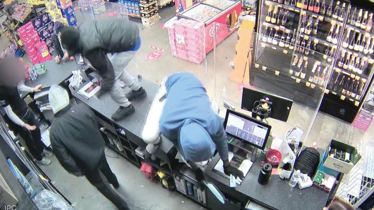 Officers were told the group assaulted one staff member before fleeing with cash and cigarettes in a white Mercedes