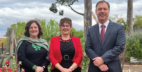 ● ● ● ● Nillumbik Mayor Frances Eyre, Yarra Plenty Regional Library CEO Jane Cowell and Bundoora MP Colin Brooks icelebrate $438,243 of funding for the outdoor area of the Diamond Valley Library at Greensborough.