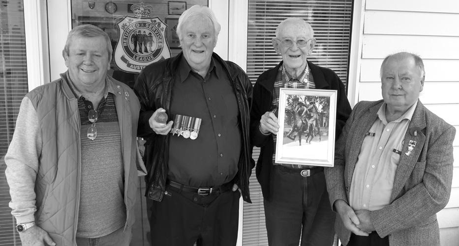 ● ● From left: Ed Davies, Yea-Kinglake RSL President; Barry Galvin, Shepparton RSL, holding the Blue Cross Medallion; Stan Stewart, Yea-Kinglake RSL holding the framed photo of the statue to ‘Bill the Bastard’; Bill Perry, Girgarre RSL.