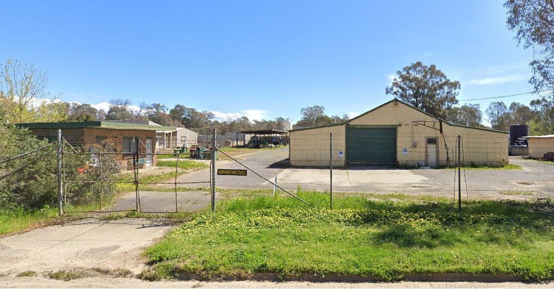The land includes several depot buildings, sheds and open storage/parking spaces.