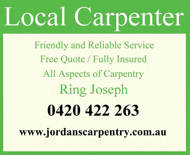 MANNINGHAM EDITION Murphy’s Fencing 0411 477 322 Paling, picket & gates. Small job & repair speciality. Non Arsenic treated Only use Red Gum Posts Free Quotes Local and Independent. Not associated with any other publication in this area. ‘The Local Paper’ is published by Local Media Pty Ltd BULLEEN • DONCASTER • DONCASTER EAST • DONVALE • PARK ORCHARDS • TEMPLESTOWE • WARRANDYTE A1 MASTER PAINTER PTY LTD 0419 396 179 More than 30 years experience Exteriors, Interiors Industrial, Residential Dulux or any other premium point GUARANTEED WORK From the smallest to largest jobs FREE QUOTATIONS Phone Essy Phone: 1800 231 311 www.LocalPaper.com.au and www.AdvertiseFree.com.au Rubbish Removal • Clean-Ups Gutter Cleaning • Landscaping Hedge Trimming • Odd Jobs Mowing & Edging Lawn Turf Installation FREE QUOTES Fully Insured CALL JASON ON 0451 222 888 NBS PROPERTY MAINTENANCE ★★★★★★★★★★★★★★★★★★★★ ★★★★★★★★★★★★★★★★★★★★ ★ ★ ★ ★ ★ ★ ★ ★ ★ ★ ★ ★ ★ ★ ★ ★ ★ ★ ★ ★ ★ ★ DP DIGGING 0403 259 147 Mini Landscaping ★ Retaining Walls ★ Paving ★ Turfing ★ Small Concrete Jobs ★ Free Quotes Metal, Tile Roof Specialist 0432 621 742 bsaferoofing@gmail.com by Ex-historic Monument restorer (France) Fascia and Guttering Carpentry, Carport Decking, Painting and Home Improvements Affordable Prices Call Pat: 0411 780 223 9841 4762 A/H CMC PAINTING & REPAIRS ✔ Interior & Exterior ✔ Local Tradesman ✔ Plastering & Tiling ✔ Fully Insured WEDNESDAY, SEPTEMBER 28, 2022 Star Tree Services QUALIFIED ARBORISTS 5783 3170 Free Quotes. Full Insurance Cover www.treeservices.com.au mail@treeservices.com.au • Tree Removal • Tree Surgery & Pruning • Consultations & Reports • Elm Leaf Beetle Control • Mulch & Firewood Sales H-G17 PROMOTE YOUR BUSINESS ON THE FRONT-PAGE FROM JUST $28 PER WEEK The Local Paper Phone 1800 231 311, 0450 399 932 editor@LocalPaper.com.au Your business can have front-page prominence in a local edition of The Local Paper for just $28 per week if you order a 45-issue pre-paid package. Limited offe. First-in basis. PAUL’S FENCING 0410 061 180 25 Years’ Experience Specialsiing in: paling and picket fences and gates Dependable Coaching College Established 1972 25% Off Usual Charges to celebrate 50 years consecutive trading Private tuition. All primary, secondary and tertiary subjects. Prepartion for all college exams and VCE 12 Keir Ave, Doncaster East Phone 9848 3559, 0427409 980 dependablecoachingcollege@gmail.com ‘Your Success Is Our Business’ HEADSPACE CALL Bert’s Home Care Bathrooms • Bedrooms Corridors • Kitchens Living Rooms etc including Shopping & Transport Melbourne, inner eastern suburbs Happy to serve you! Call 0423 486 1180423