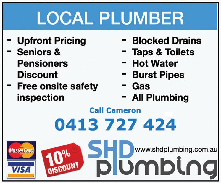 WEDNESDAY, JULY 12, 2023 Local and Independent. Not associated with any other publication in this area. NORTHERN SUBURBS EDITION ‘The Local Paper’ is published by Local Media Pty Ltd NORTHCOTE BUDGET • PRESTON POST-TIMES • WHITTLESEA POST • HEIDELBERGER • DIAMOND VALLEY NEWS Phone: 9489 2222. www.LocalPaper.com.au and www.AdvertiseFree.com.au Incorporating the Evelyn Observer (Est. 1873)) Northcote Budget, Preston Post, Reservoir Times, Whittlesea Post, The Heidelberger, DV News and Diamond Valley News. Observer Melbourne FREE COPY INSIDE DELIVERING 7 DAYS A WEEK 2, 3, 4, 6, 7 & 8 M3 BINS 0425 766 823 ADVANTAGE BIN HIRE QUALIFIED ARBORISTS 5783 3170 Free Quotes. Full Insurance Cover www.treeservices.com.au mail@treeservices.com.au • Tree Removal • Tree Surgery & Pruning • Consultations & Reports • Elm Leaf Beetle Control • Mulch & Firewood Sales Star Tree Services ‘EXTORTION’ AT ELTHAM Collector looking for front & top loading automatics, 40 years & olde. Brands like Frigidaire, Astor, Wilkins Servis, Inglis, Simposn & Pope Norge. PROMOTE YOUR BUSINESS ON THE FRONT-PAGE FROM $39 PER FORTNIGHT The Local Paper Phone 1800 231 311, 0450 399 932 editor@LocalPaper.com.au Your business can have front-page prominence in a local edition of The Local Paper for just $39 per fortnight if you order a 23-issue pre-paid package totalling $897. Limited offer. First-in basis. WONDERFOOD BAKERY Home made meat pies,sausage rolls,pastie birthday cakes, artisan yeast free bread ,dark rye spelt and more. Hot cofee,iced drinks, German bretzels. Home delivery, Uber, Menulog, Deliveroo Monday to Saturday . 7.30am to 4.30pm Mention this ad for 10% discount Shop 15A, Stables Shopping Centre, 314 Childs Rd, Mill Park Phone: 9436 5009 FOR A FREE QUOTE CALL WES: 0416 695 138 RO RO RO Y Y Y Y Y AL TREE SERVICES AL TREE SERVICES AL TREE SERVICES AL TREE SERVICES Email: wes@royaltreeser wes@royaltreeser Email: wes@royaltreeser wes@royaltreeser vices.com.au www.royaltreeservices.com.au Free Quotes Free Quotes Free Quotes Free Quotes • T • • T • Tree Removals ree ree Removals • Pruning • Pruning • Pruning • Pruning • Stump-Grinding • • Stump-Grinding • • Fully Insured • • Mulch for sale • for • Mulch for sale • for JUST LAW VICTORIA Family law and Criminal Defence Lawyer Family Law • Divorce • Parenting Orders •Financial Orders Criminal Law •All criminal offences Intervention Orders • Family Violence Intervention Orders •Personal Safety Intervention Orders Ph: 0421 121 403 Email: mike@justlawvictoria.com.au IVANHOE NEWS & TATTS 194 Upper Heidelberg Rd Phone 9499 1231 OPEN 7 DAYS A WEEK Mon-Sat 7am to 6pm Sunday 8am to 3pm All Types of Concrete Mark - Free Quote 0415 611 011 No Jobs Too Big Or Small All Finishes Included ☛ ☛ ☛ ☛ ☛ Driveways ☛ ☛ ☛ ☛ Slabs ☛ Cross-overs ☛ ☛ Paths ☛ ☛ Garage Floors ☛ ☛ ☛ ☛ Exposed Aggregate ☛ ☛ ☛ ☛ Plain ☛ ☛ ☛ ☛ Stencil ☛ ☛ Slate ☛ ☛ Coloured 20 Years Experience. Family Business. 9459 6300 34 Rosanna Road Heidelberg Vic 3084 www.heidelbergdentist.com.au www.facebook.com/Heidelbergdentist Alex 0433 205 321 HAMMER EXCAVATIONS • Specialising in Rock & Sleeper Retaining Walls • Tight Access • Site Clean • Demolitions • Bob Cat, Excavation & Tipper Hire • Small & Large Jobs WOMEN’S CIRCLE Become aware of inner strength. Your Quiet Place within. “Feel more alive” Thursday 10am-10.30am. Call Lorraine Edwards 0425 761 882 Vine & Branches Education Centre 27 Bonds Rd, Lower Plenty DALLI BUILT CARPENTRY Decks and Pergolas Retaining Walls Pool, Glass, Paling, Colorbond and Picket Fencing Outdoor Entertaining Areas Deck Relays 0432 014 190 PLASTERER 0423 865 920 NO JOB TOO SMALL Solid plastering and all Plasterboard works. Ring PAUL Metal, Tile Roof Specialist 0432 621 742 bsaferoofing@gmail.com by Ex-historic Monument restorer (France) Fascia and Guttering Carpentry, Carport Decking, Painting and Home Improvements