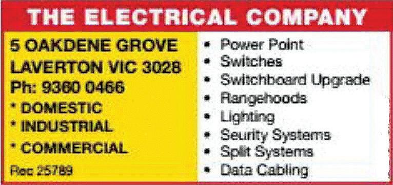 Star Tree Services QUALIFIED ARBORISTS 5783 3170 Free Quotes. Full Insurance Cover www.treeservices.com.au mail@treeservices.com.au • Tree Removal • Tree Surgery & Pruning • Consultations & Reports • Elm Leaf Beetle Control • Mulch & Firewood Sales H-G17 0411 524 120 • Specialising in Colourbond, paling, picket fences. • Motorised gates, sliding gates. • All types of fencing. NCH FENCING DELIVERING 7 DAYS A WEEK 2, 3, 4, 6, 7 & 8 M3 BINS 0425 766 823 ADVANTAGE BIN HIRE 0418 560 978 www.allwestbinhire.com.au Walk in bins 4, 6, 8, 10, 12 & 20m3 6 days HOME AND MAINTENANCE REPAIRS Insurance Work, Fencing, Gardening, Bricklaying, Small Jobs Welcome. Fences, Retaining Walls, etc. 0418 581 631 FREE CAR REMOVAL 0422 108 512 Also Towing Service Available LMCT 10268W Pay up to $600 for all complete cars dead or alive! OLD MATE CARPENTRY 0408 285 958 Who do you call, Old Mate? For all your building and maintenance needs. Call Senan oldmatec@gmail.com greenzone greenzone construction. construction. construction. com.au CDB-U 49637 We are a family business, specialising in Home extensions and multi-unit developments, in and around Melbourne, that prides itself, on providing quality and value for money projects. With over 30 years experience and being the culmination of three generations of builders, we offer a broad range of knowledge and experience. Service is our goal! 0402 046 265 0402 046 0402 046 265 0402 046 0421 601 213 Spiders, Cockroaches, Ants, Rodents, All General Pests PEST CONTROL SERVICES www.pestfreezone.com.au Joseph 0437 770 077 • Mix Heavy Accepted • Walk In Bins • Bob Cat Hire *Same Day Service Conditions Apply* Mention this paper for a $50 discount on all sizes ALL SEASON BIN HIRE