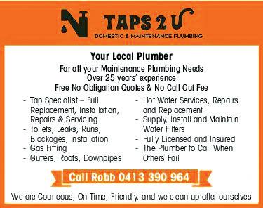 WEDNESDAY, MAY 24, 2023 Local and Independent. Not associated with any other publication in this area. ‘The Local Paper’ is published by Local Media Pty Ltd Phone: 1800 231 311. www.LocalPaper.com.au www.AdvertiseFree.com.au PENINSULA-FRANKSTON-GREATER DANDENONG CASEY-CARDINIA EDITION MORNINGTON PENINSULA • SOUTHERN PENINSULA • WESTERN PORT • FRANKSTON • CASEY • CARDINIA • DANDENONG Observer Melbourne FREE COPY INSIDE Panorama Cabinets specialise in Kitchens, Bathrooms, Laundries, BBQ Areas, Wardrobes and All Your Cabinetry needs. Con Anagnostopoulos (Director) 0402 080 910 for all quotes & enquiries Office: 9793 3991 4 Linley St, Dandenong info@panoramacabinets.com.au www.panoramacabinets.com.au Pensioner Discount Applies GARY’S RUBBISH REMOVALS ✆ 0414 566 273 We do all the work Same day service. No job too small. STRESSED OR ANXIOUS? Here are a few of our services Shoe & bag repair House & car key cutting Garage & gate remotes Watch & car key batteries Watch, clock & jewellery repairs Engraving Giftware Pet tags & plaques Shop 9A, 49 Eramosa Rd West Somerville. 0413 347 347 NOW OPEN I offer online counselling to women around Australia who are experiencing stress, anxiety or work and career issues. As a Registered Nurse and counsellor, I bring experience and genuine warmth to sessions. If you affected by something that is impacting your work or home life, or need extra support, please get in touch to talk about how I can help you. Phone: 0404 691 053 Phone: info@integrativetherapyspace.com.au Website: www.integrativetherapyspace.com.au 0417 371 666. www.flowtechpainting.com.au • Interior/Exterior painting. • Stained timber conversions. • Refacing kitchen, bathroom and laundry cupboards. • Weatherbord homes. • Exterior transformations. • Bath/basin 2-pack. • Refacing old bathroom & kitchen tiles with enamel. • Roof restorations - Colorbond tin or tile. • Custom feature walls. • High pressure washing/cleaning. • Deck restorations and staining. • Fence painting. • Driveways, garage floors, concrete sealing and painting. 0435 788 758 0448 714 604 Asphalt & Bitumen Spray Seal - Recycled Asphalt Driveways Potholes Car Parks Repairs PROMOTE YOUR BUSINESS ON THE FRONT-PAGE FROM $39 PER FORTNIGHT The Local Paper Phone 1800 231 311, 0450 399 932 editor@LocalPaper.com.au Your business can have front-page prominence in a local edition of The Local Paper for just $39 per fortnight if you order a 23-issue pre-paid package totalling $897. Limited offer. First-in basis. Metal, Tile Roof Specialist 0432 621 742 bsaferoofing@gmail.com by Ex-historic Monument restorer (France) Fascia and Guttering Carpentry, Carport Decking, Painting and Home Improvements PAUL’S FENCING 0410 061 180 25 Years’ Experience Specialsiing in: paling and picket fences and gates