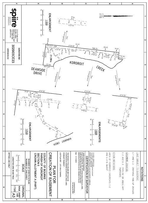 An easement for water supply and sewerage purposes over that part of the land marked as “E-2” and “E-3” on the plan for creation of easement (Surveyor’s Ref. 302903CE23, Version 04) depicted below in accordance with the rights and obligations set out in Memoranda of Common Provisions AA8989 and AA8988 in relation to the water supply and sewerage components of the easement respectively.