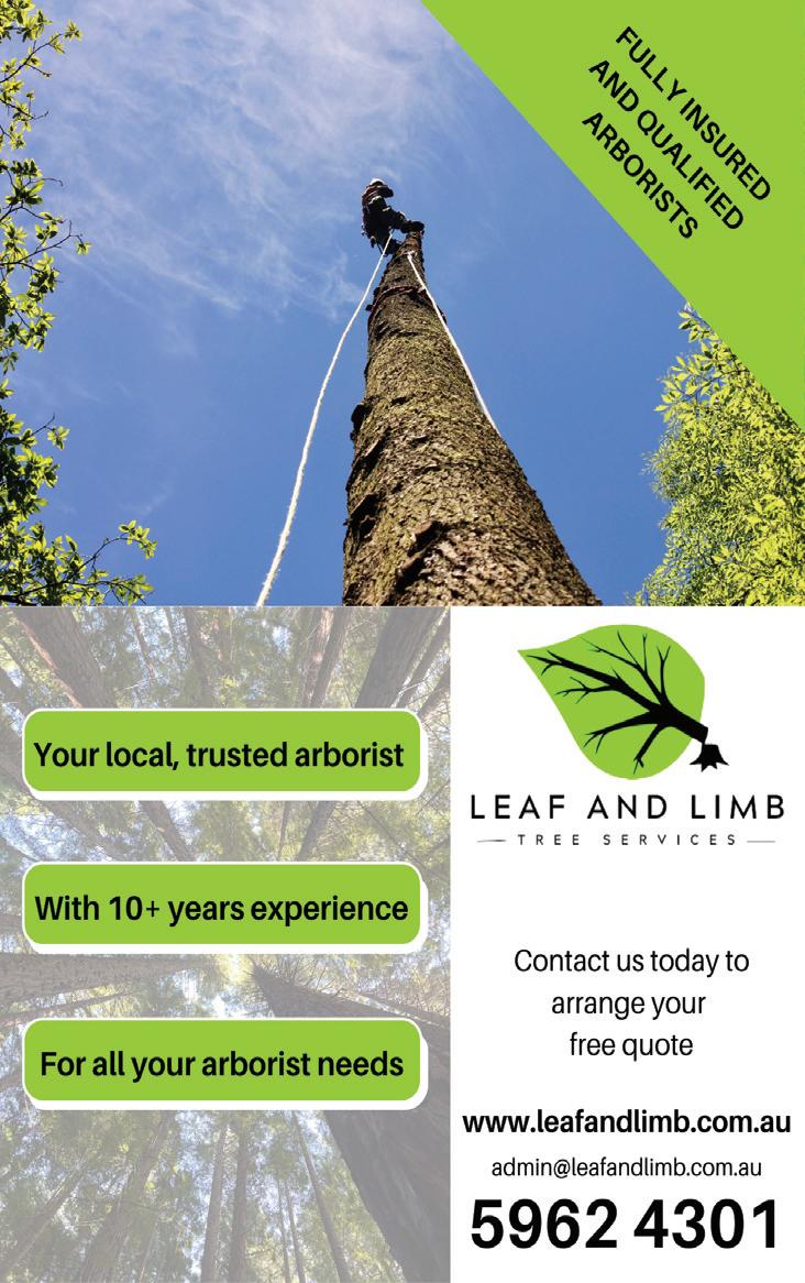 QUALIFIED ARBORISTS • Tree Removal • Tree Surgery & Pruning • Consultations & Reports • Elm Leaf Beetle Control • Mulch & Firewood Sales 5783 3170 Free Quotes. Full Insurance Cover www.treeservices.com.au mail@treeservices.com.au