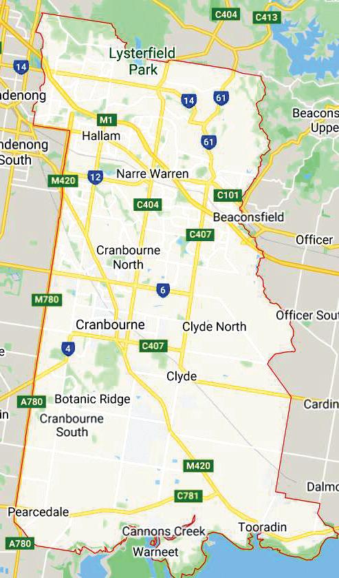 The Casey-Cardinia Edition readership area comprises part of the City of Casey including Cranbourne, Cranbourne East, Cranbourne North, Cranbourne South, Cranbourne West, Devon Meadows, Doveton, Endeavour Hills, Eumemmerring, Hallam, Hampton Park, Harkaway, Junction Village, Lynbrook, Lyndhurst (part), Pearcedale (part). The entire City of Casey is home to more than 340,419 people, living in approximately 102,790 homes.