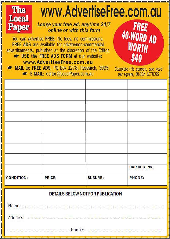 To apply for a free advertising package, complete the form online, or mail the coupon (below) to The Phoenix, PO Box 1278, Research, Vic 3095. All advertising packages are subject to the approval of the Editor of The Phoenix.