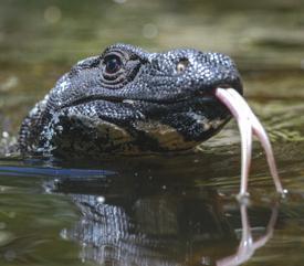 ● As temperatures soar this month, Chantilly the Lace monitor has been soaking up the sunshine at Healesville Sanctuary. This large lizard enjoys a cool dip, lapping it up in his pond much to the delight of visitors. Healesville Sanctuary Reptile Keeper Courtney Pridgeon said monitors or goannas can be incredible swimmers, and they swim for a variety of reasons. “It can be part of them moving through their habitats, like crossing a river, as an area of refuge, a place to hunt or even to help them thermoregulate. In Chantilly’s case, it helps him to manage his body temperature on warmer days,” Ms Pridgeon said. “As ectotherms, goannas don’t regulate their body temp like we do and rely on external sources like the sun or their environment to warm up and cool down.”