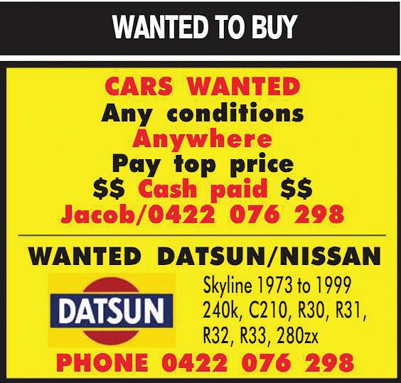 ALL CAR advertisers must supply registration or Vehicle Identification Numbers. By law, we are unable to publish listings without those details.