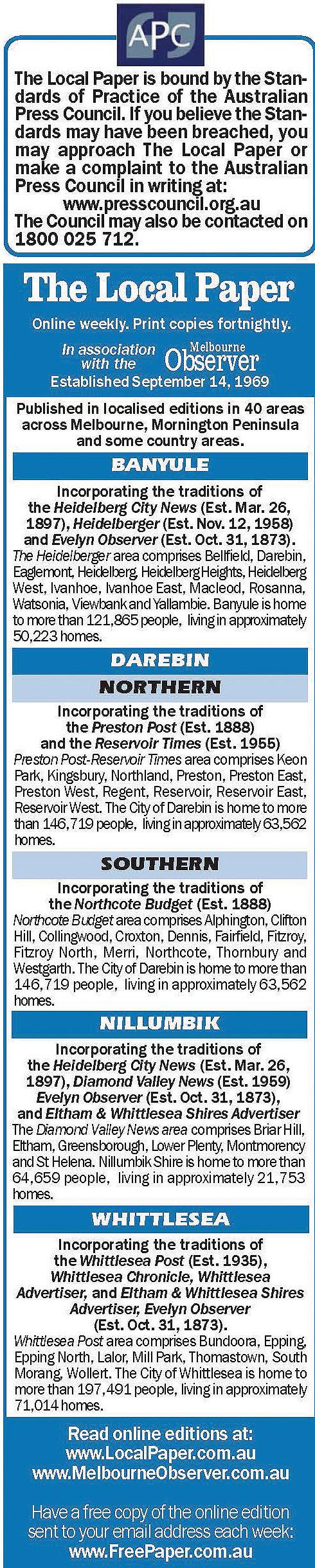 You can reach people in every Melbourne suburb, across the Mornington Peninsula, and in selected Victorian country areas. In print AND online.