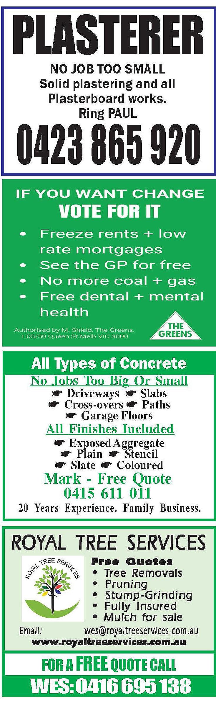 Montrose. 0414 582 297. F-I