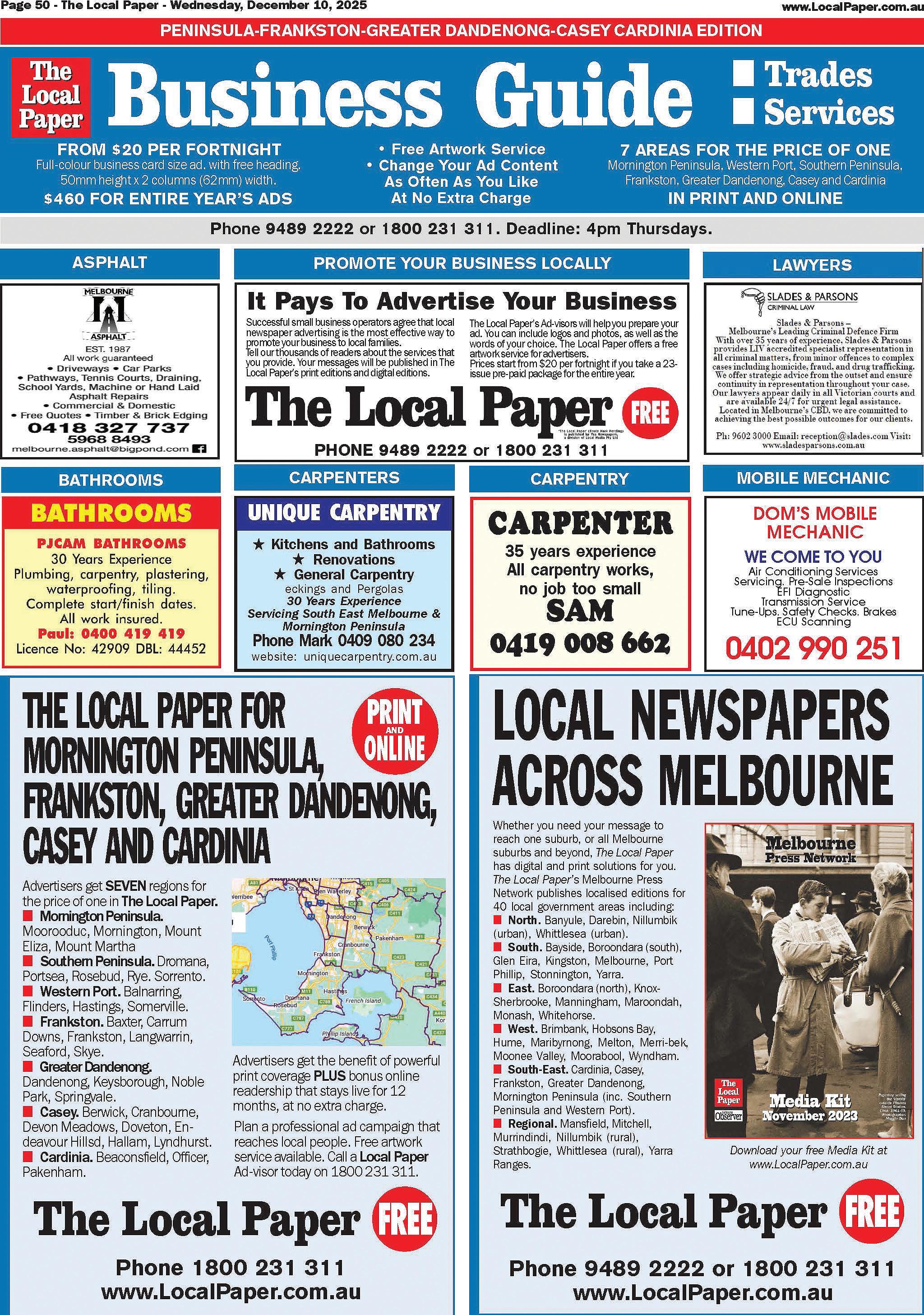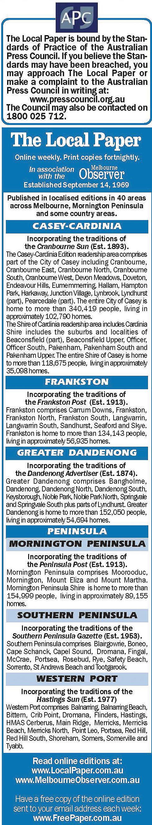 You can reach people in every Melbourne suburb, across the Mornington Peninsula, and in selected Victorian country areas. In print AND online.