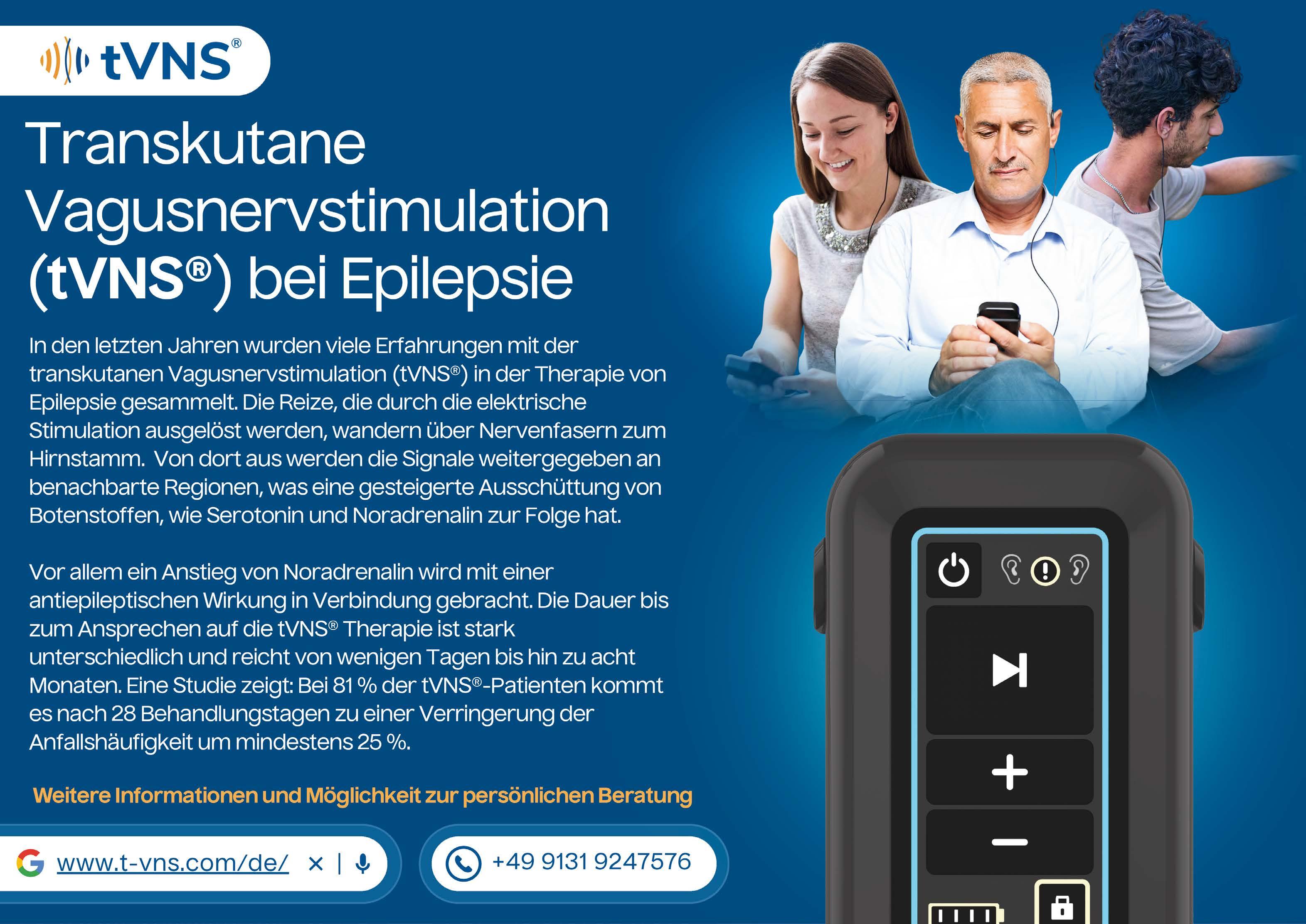 Die taVNS-Geräte sind als Medizinprodukte zertifiziert (CE-Zeichen). Die Methode kann bei Personen ab einem Alter von 3 Jahren zur Anwendung kommen und wird inzwischen nicht nur bei Epilepsie, sondern auch bei der Behandlung bestimmter Schmerzen sowie bei Depressionen erfolgreich eingesetzt.
