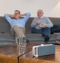 entspannt fernsehen können, ohne den Ton übermäßig aufzudrehen. Der tragbare TV-Sprachverstärker mit innovativer Technologie zur Stimmoptimierung lässt sich leicht mit dem Fernseher verbinden und funktioniert kabellos über bis zu 30 Meter Distanz. Der Ton wird so direkt zum Sitzplatz gebracht. Auf Knopfdruck werden Stimmen und für Sprache wichtige Frequenzbänder aktiv hervorgehoben, während störende Nebengeräusche dynamisch herausgefiltert und minimiert werden. Der eingebaute Akku hat eine Laufzeit von bis zu 16 Stunden. Einem genussvollen, langen Fernsehabend steht mit OSKAR nichts mehr im Weg.