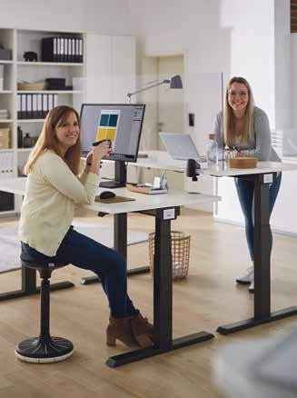 Sitzen. Eine dynamische Rückenlehne, die mit einer Lumbalstütze versehen ist, unterstützt die aufrechte Haltung. Höhenverstellbare Tische und optimale Lichtverhältnisse durch direkte und indirekte Beleuchtung zählen zudem zur Gesundheitsvorsorge. Auch Raumkonzepte können positive Effekte erzielen: Ein ansprechendes Büro mit genügend Bewegungsraum sowie zeitgemäßer und funktionaler Ausstattung ist ein Ort, an dem man gerne verweilt. Das gilt sowohl für das Büro, als auch für das Homeoffice.
