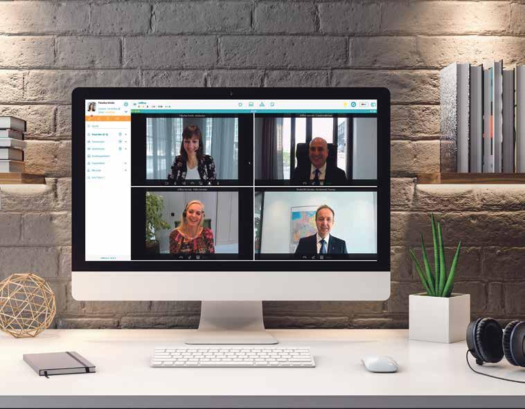 Kommunikations-Verfügbarkeitsstatus nach. So können, einfach per Klick oder Touch auf das Foto, spontan Mitarbeiter per Videocall angesprochen und auch spontan in Videocalls einbezogen werden.