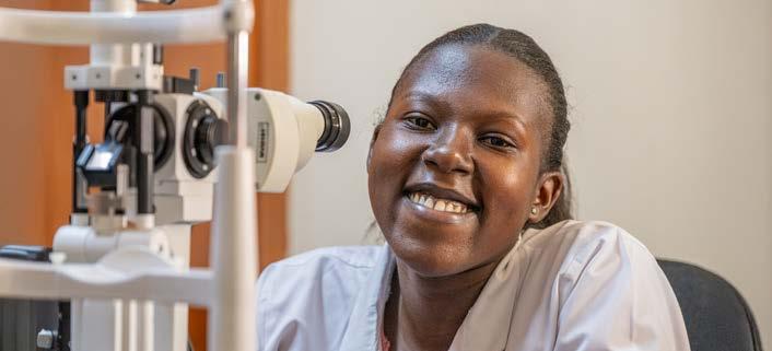 Dr. Teddy Zalwango wird Augenärztin! Dank des CBM-Mentorenprogramms wird die junge Medizinerin zur Fachärztin für Augenheilkunde fortgebildet – wie viele weitere Ärztinnen und Ärzte. Ohne sie würden viele Frauen, Männer und Kinder mit Augenkrankheiten wie Grauem Star ein Leben in Dunkelheit verbringen.