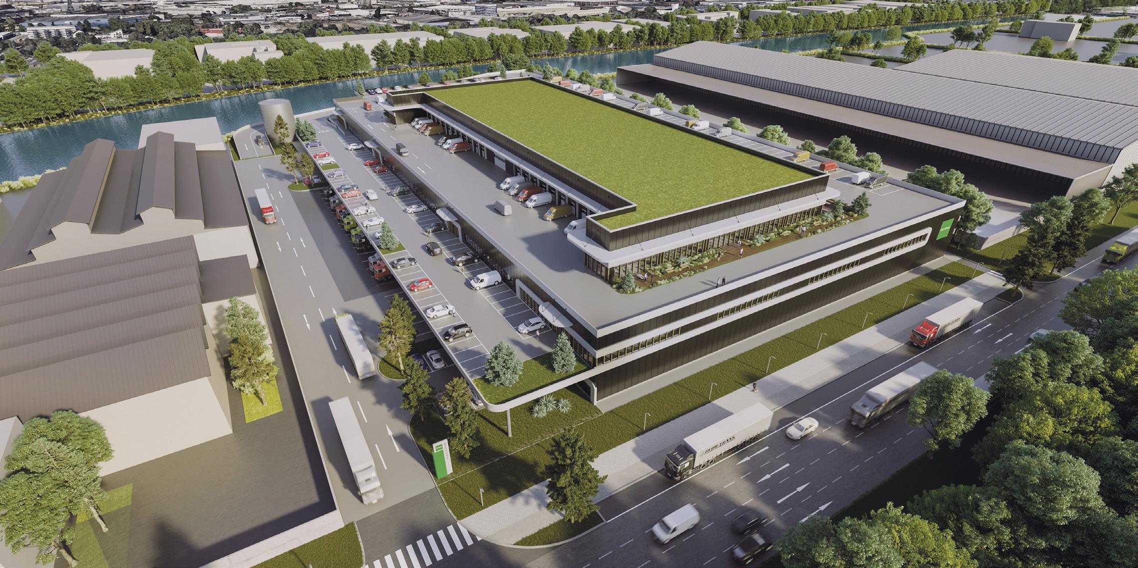 Zuerst einmal liegt sie im zentralen Hamburg-Billbrook, einer der gefragtesten Lagen für Last-MileLogistik und Quick-Commerce der Hansestadt. Mit 25.000 Quadratmetern Gewerbefläche, 2.500 Quadratmetern Büro- und Sozialfläche sowie ausreichend Parkplätzen für Pkws und Kleintransporter auf mehreren Ebenen erfüllt sie alle Anforderungen für eine urbane, nachhaltige Multi-Level-Immobilie. Das Stadtzentrum ist nur zwei Kilometer entfernt und die Lage damit bestens geeignet für die Logistik der letzten Meile – genauso wie die Verkehrsanbindung. Der Standort bietet eine direkte Anbindung ans Wasser und an die Schiene über das Terminal für den kombinierten Verkehr in Moorfleet. Damit liegt er zum einen direkt am innerstädtischen Ring 2 und zum anderen in unmittelbarer Nähe zu den leistungsfähigen Autobahnen A1 und A25. Zusätzlich kommt hier das Nachhaltigkeitsprogramm GreenSpace+ von Goodman zum Tragen. Ein Fokus liegt auf der