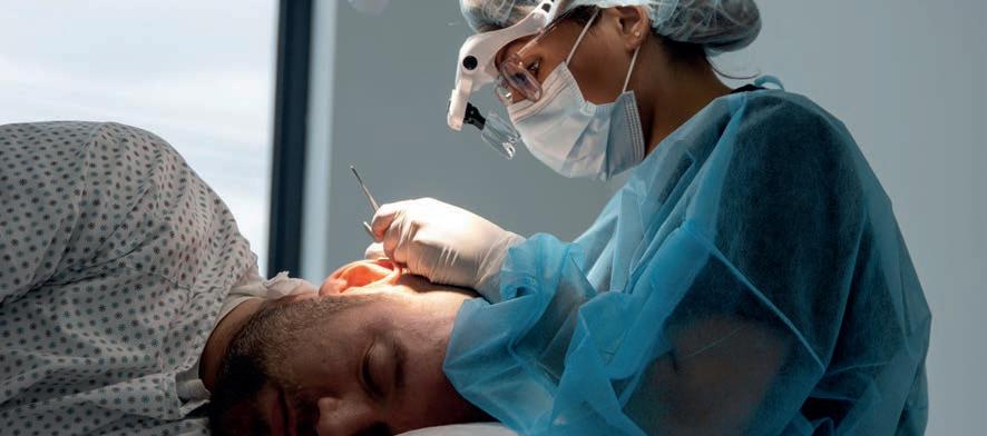 Wilssany: “De cliënt wordt gedurende de hele behandeling bijgestaan. Gezonde spanning blijft er altijd. Na het tekenen van haarlijn en kruin volgt het maken van vooraf-foto’s. Vervolgens wordt het haar geheel of gedeeltelijk weggeschoren. We hebben een kapper in dienst die ervoor zorgt dat je na afloop een net kapsel hebt. En we werken samen met kappers in heel Nederland, die we speciaal trainen op nazorg na transplantatie. Na verdoving van het donorgebied, worden de haren weggehaald. Dit is heel precies werk. Vlak voor de lunch is dat klaar; dan volgt verdoving van het gebied waar de haren komen. Na de lunch worden gatjes in de huid gemaakt, waarna de haren hun plaats krijgen. De totale duur van de behandeling is zo’n acht tot negen uur.”