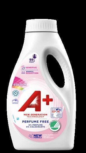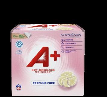 A+ Perfume Free -pesuaineet ovat saatavilla sekä kapseleina että nestemäisinä. Molemmat on suunniteltu pesemään tehokkaasti, mutta herkän ihon huomioiden.