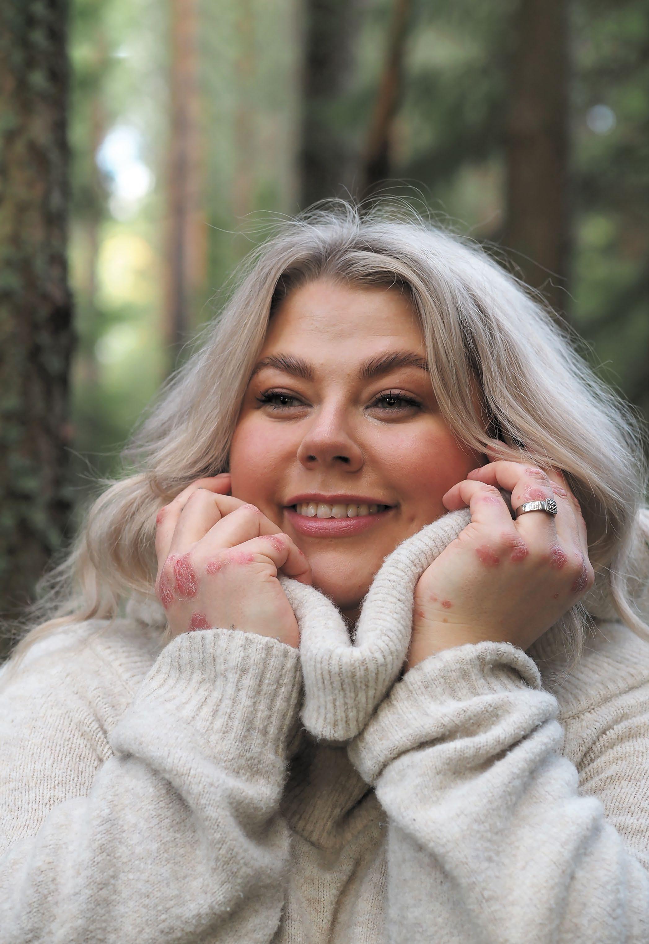 – Psoriasis on osa minua ja kehoani, eikä ole mitään syytä, miksi sen pitäisi pysyä piilossa. Haluan olla esimerkki siitä, että tämänkin näköinen iho on täysin ok.