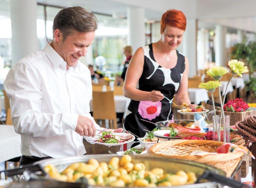 Usein kokouspäivä alkaa tervetuliaisdrinkillä ja yhteisellä aamiaisella. Kevyen lounaan saa halutessaan kokoustiloihin ja illalla ryhmä voi nauttia yhteisestä menusta buffetissa tai à la carte -ravintolassa.