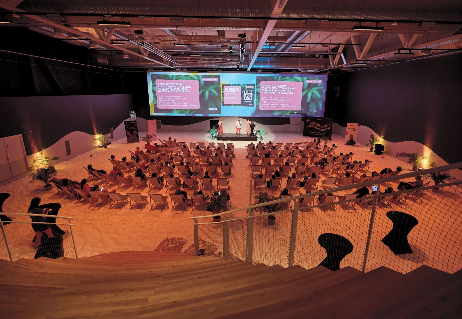 Pehmeä hiekka narisee jalkojen alla, ja rantalentopallo nousee ilmaan muutaman metrin päässä kokoustilasta. Helsingin Salmisaaressa sijaitsevalla Biitsillä työpäivä siirtyy hetkessä neuvottelupöydästä rantahiekoille. Ympärillä ei tosin ole uimarantaa, vaan upea sisäkesä täynnä valoa ja liikettä. Biitsi tunnetaan beachvolley -kentistään, mutta 20 vuoden aikana siitä on kehittynyt myös monipuolinen tapahtumapaikka yrityksille. Kokouspäivästä tulee siellä helposti yhteinen elämys, jossa työ, liikkuminen ja yhdessäolo vuorottelevat luontevasti. – Biitsi on tapahtumapaikka, jossa yhdistyvät kokoustilat, urheilulliset aktiviteetit, saunat ja laadukkaat ravintolapalvelut. Yrityksille mahdollistamme aktiivisen tiimi- tai asiakaspäivän ilman häiritseviä paikanvaihtoja, toimitusjohtaja Taneli Nieminen sanoo.