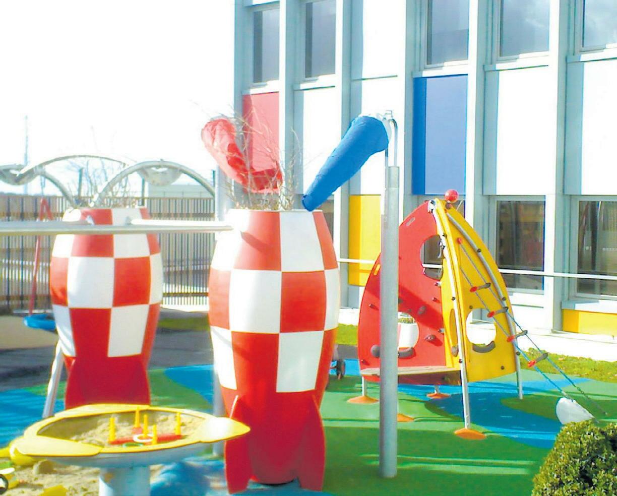 På barnkliniken på Centralsjukhuset i Kristianstad har man för att skapa glädje för barnen byggt just en taklekplats. Den rymdinspirerade lekplatsen gör det möjligt för även sjuka patienter att få frisk luft under dagarna.