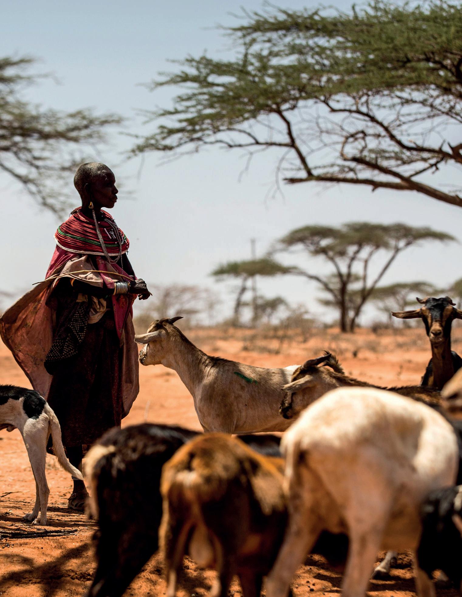 28 September 2017 (Wamba, Samburu East, Kenya). A woman, member of Samburu pastoral community, waits next to some goats during the Peste des Petits Ruminants (PPR) vaccination and Mass treatment programme that FAO and Red Cross Kenya carried out in Samburu County – as part of the Central Emergency Response to Drought.