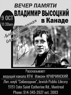 «НАША ГАЗЕТА» «NASHA GAZETA»№931 WWW.NASHMONTREAL.COM • FACEBOOK: NASH.MONTREAL • РЕКЛАМА // ADVERTISING 514.562.7217 • mediaprofit.ads@gmail.com1.10 – 14.10.2022 г. 11КУЛЬТУРА Однако возможной эта встреча стала совсем не давно благодаря протекции ближайшего друга Саши и однофамильца, Евгения Соколова. Год назад, когда мы, наконец, встретились, Саша дал согласие на под готовку клубного издания тиражом 100 нумерованных экземпляров, а также посоветовал художника Влади мира Фомина из Петрозаводска. Его 13 цветных иллю страций, выполненных в стиле карело-финского эпоса, идеально совпали с настроением Сашиных стихов. Эту книгу я также буду представлять в Монреале 9 октября в 16 час. в ресторане «Эрмитаж». Будет ли на вечере Саша Соколов? Не знаю. Думаю, что это мы узнаем только в день презентации. ТЕЛЕСЕРИАЛ «ВЕРТИНСКИЙ» АВДОТЬИ СМИРНОВОЙ: «ОТЛИЧНОЕ КИНО, ОДНАКО» Мне очень понравился этот фильм, я смотрел его не отрываясь, хотя, предварительно прочитав не сколько полярных по оценке рецензий, вначале имел некоторое предубеждение. Но в итоге получил боль шое удовольствие: здорово сделано, получилось то, что называют «атмосферным кино»! Другой вопрос, что к биографии Вертинского как таковой все это практически не имеет никакого от ношения. В целом сериал – вольная фантазия на тему Вертинского. Но я благодарен создателям фильма еще и за то, что они дали мне повод «разобрать» этот сери ал. В итоге я подготовил лекцию «Телесериал «Вертин ский»: легенды и факты». Мне удалось раскрыть про тотипы всех героев фильма и показать, как сценаристы все это «замешали». Другое дело, что лучше всего вы ступать с этой лекцией перед теми, кто недавно посмо трел сериал, тогда совсем по-иному воспринимаются события, люди, герои... ВЛАДИМИР ВЫСОЦКИЙ В КАНАДЕ – Можете ли Вы назвать Ваши самые люби мые песни Высоцкого? В отличие от многих, мне нравятся инструмен тальные работы Высоцкого. Альбом «Натянутый канат». Что ни песня – шедевр. «Баллада о правде и лжи», «Ка натоходец», «Банька по-белому»... Альбом, записан ный в Канаде, конечно. Как там звучит «Охота на вол ков»! Да и 25 песен, записанных с оркестром Гараняна мне тоже очень нравятся. Я думаю, каждый помнит «Дом хрустальный», «07» или «Кони привередливые» с этой пластинки. – Как вы думаете, почему несмотря на раз ное, зачастую полярное отношение выходцев из СССР к советскому опыту, имя Высоцкого оказа лось в каком-то смысле объединяющим; я не встре чала человека, кто не любил бы его песни. – Да потому что в них – правда! Мы читаем се годня стихи Пушкина или произведения Чехова, по тому что они – вне времени. В них затронуты темы, которые волнуют человека и рассказано о них просто, доходчиво. Та же история и с основной частью насле дия Высоцкого. Высоцкий, согласитесь, для людей, рожденных между тридцатыми-восьмидесятым года ми прошлого века – это часть генетического кода, на столько он сильно в нас «вбит». Когда слушаешь его песни – это все равно, что беседуешь с другом. – О пребывании Высоцкого в Монреале в 1976 г. и поездке на студию в Моrin-Hights расска зано в книге «Владимир или прерванный полет» Марины Влади. Несколько лет назад «Наша Газета» опубликовала нашу беседу с Андре Перри, владель цем той легендарной студии, где была записана пластинка Высоцкого. Нам также известен дом и улица в районе Утремон, где жили Высоцкий с Ма риной. Но о его пребывании в Торонто мы знаем очень мал