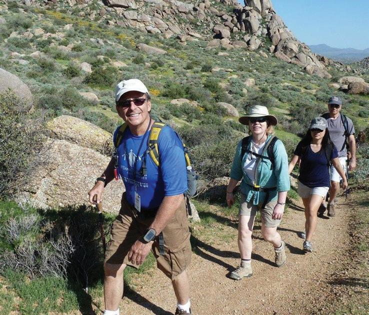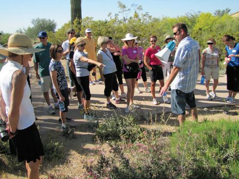 Residents and guests were treated to an enlightening lesson on desert flowers during the April 6 Wildflower Walk led by Landscape Manager Gary Whitener ll (center right). Photo: Jeffrey Ortagus