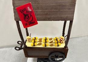 Bij Patisserie was het thema Taste of Asia. Het chocolade-showstuk van Ginger was geïnspireerd op de Aziatische Nightmarkets. Ze maakte een eetstalletje met daarop nigiri, noodlebakjes en gyoza’s; uiteraard allemaal van chocolade. Daarnaast moest ze een desserttaart maken op basis van een citrusvrucht en de mystery-opdracht bestond uit het maken van twaalf petit-fourtjes die maximaal 25 gram mochten wegen. “Ze wogen tussen de 22 en 24 gram; dat was wel een uitdaging”, vertelt Ginger Brentjens.