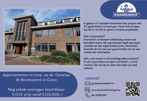 Het historische Generaal de Bonsterrein krijgt een nieuwe bestemming als woonwijk waar ontmoeting en betrokkenheid centraal staan. Op deze unieke locatie komen zo’n 125 tot 150 bewoners samen in een omgeving die leefbaarheid, duurzaamheid en gemeenschap ademt. Met drie verschillende woonopties –zelfbouwwoningen van Steenvlinder, huurappartementen van Mooiland en het Knarrenhof voor senioren – is er voor uiteenlopende woonwensen een passende plek.