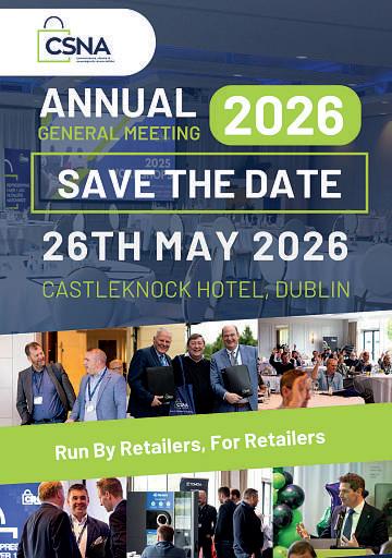Later in the month, the Convenience Store and Newsagents Association (CSNA) Annual General Meeting will be held on 26 May at the Castleknock Hotel, Dublin.